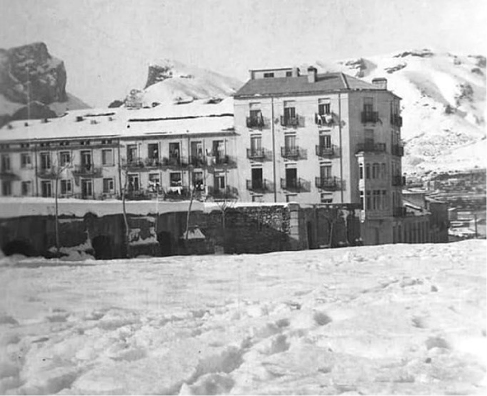 Solar del tendedero, visto desde el lado este, durante la nevada de 1916.