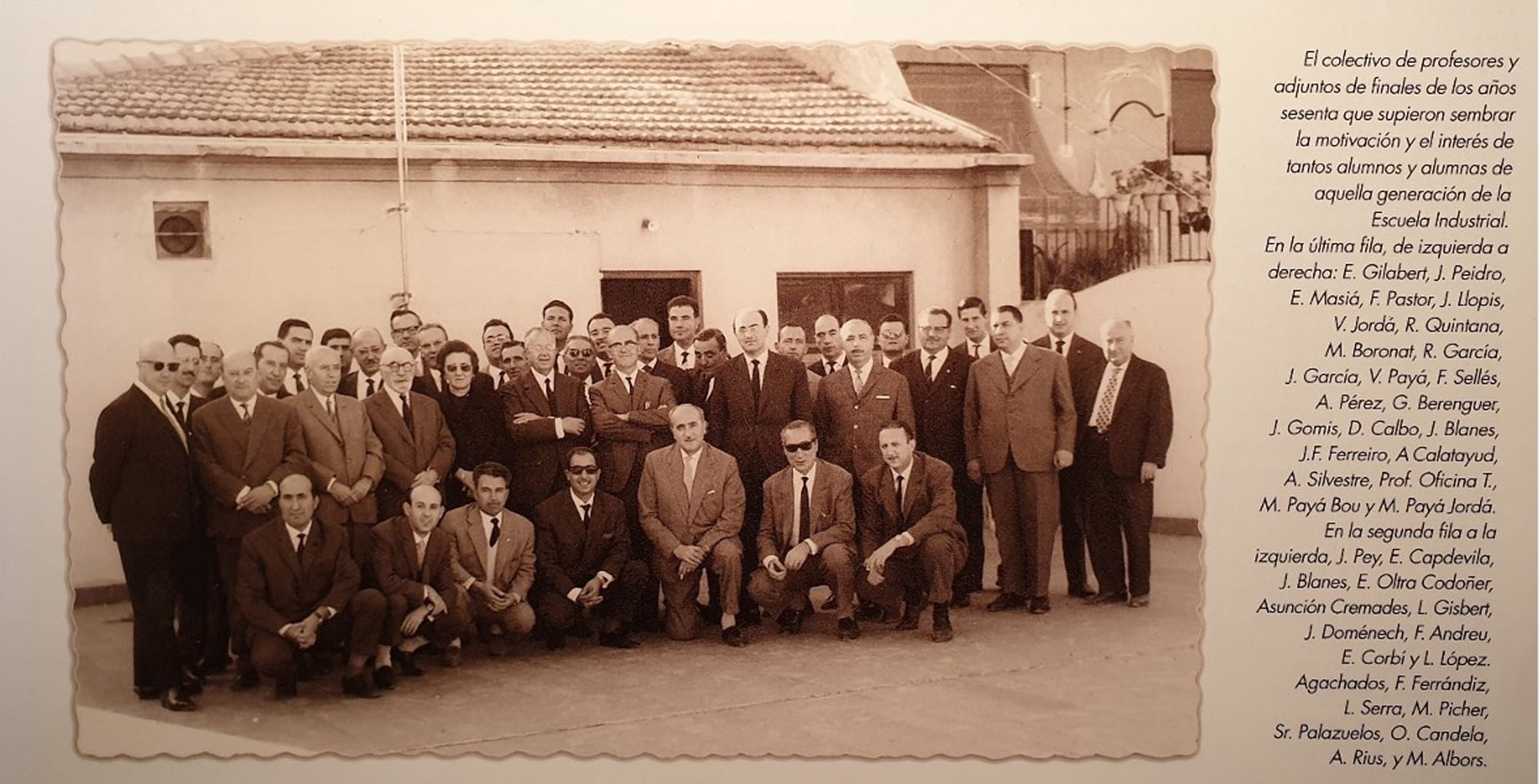 Claustro de profesores de la Escuela de Peritos de Alcoy, hacia finales de los años 60. En 1941, el Ministerio de Educación asumió el Edificio Viaducto, destinándolo al uso educativo. Inicialmente, se trasladaron allí los alumnos del Instituto de Enseñanza Media de Alcoy y los estudiantes de las escuelas.
