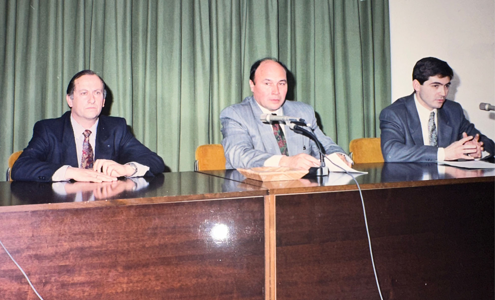 Uno de los primeros Seminarios de Automoción a principios de los años 90, Monlleo (gerente de la planta de fabricación de Ford), Justo Nieto y Joan Dols, profesor del Departamento presentando el seminario.
